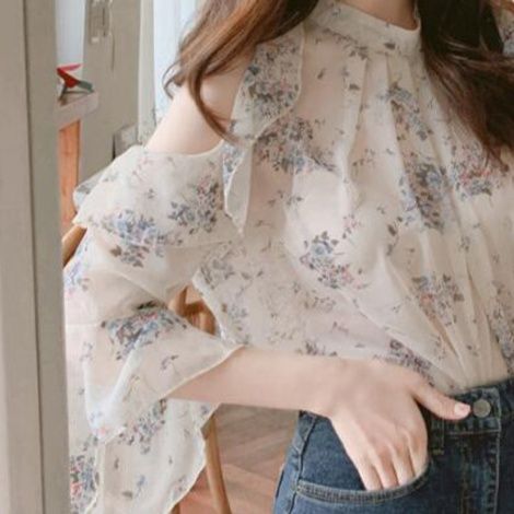 軽やかなシフォン素材に美しい花柄をあしらった、上品で女性らしいブラウスです。 袖のフリルデザインが華やかさをプラスし、カジュアルからオフィススタイルまで幅広くお使いいただけます。 夏の装いを格上げする一着として、ぜひお選びください。