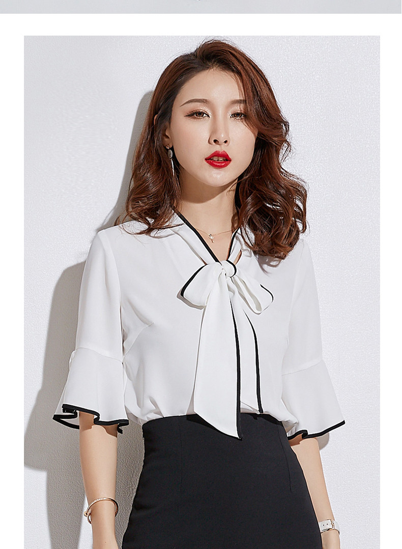 首元の大きなボウタイが上品な印象を与えるブラウスです。