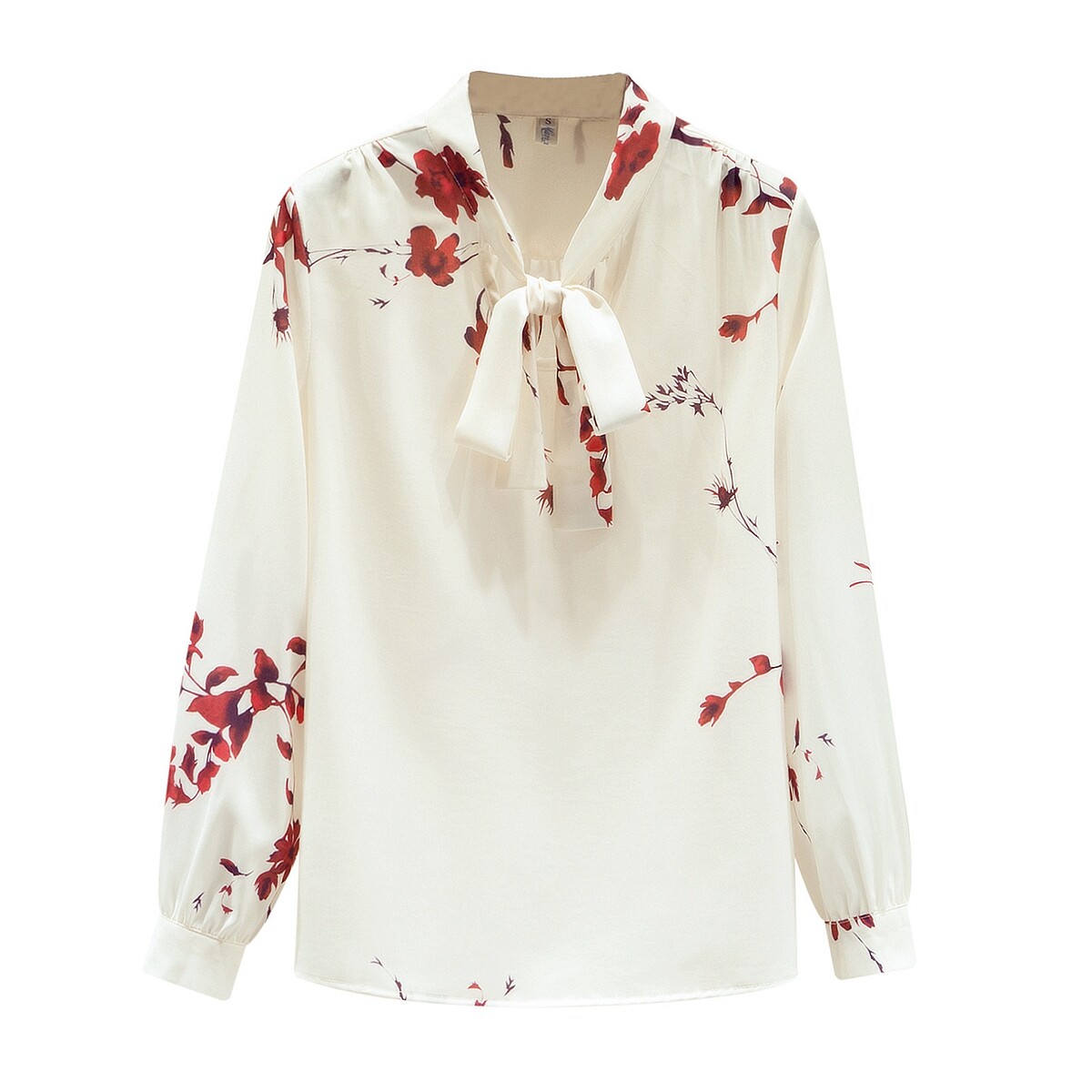 華やかな花柄が全体に散りばめられた上品なブラウスです。